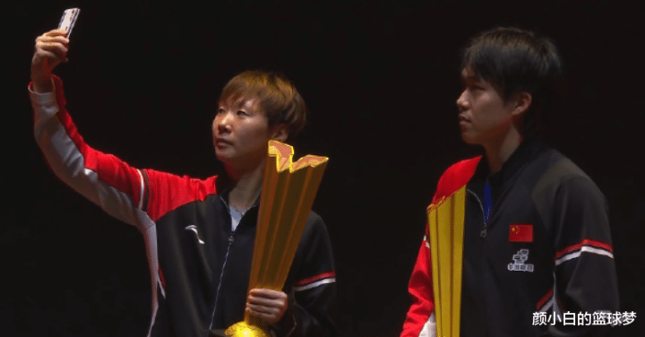 两个单打冠军的手持自拍合影时,王曼昱、王楚钦都是没有任何的表情,这两人好像不是在领奖一般!
