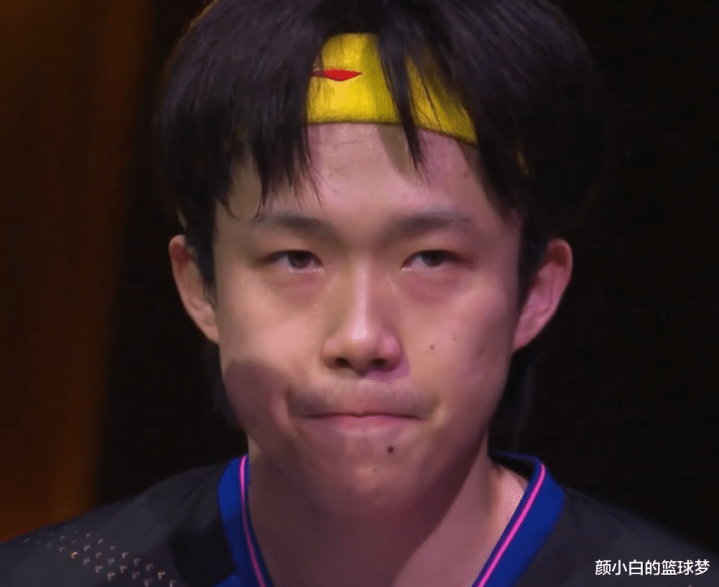 王楚钦手持冠军自拍时大家可以看到他的表情很严肃,非常严肃。