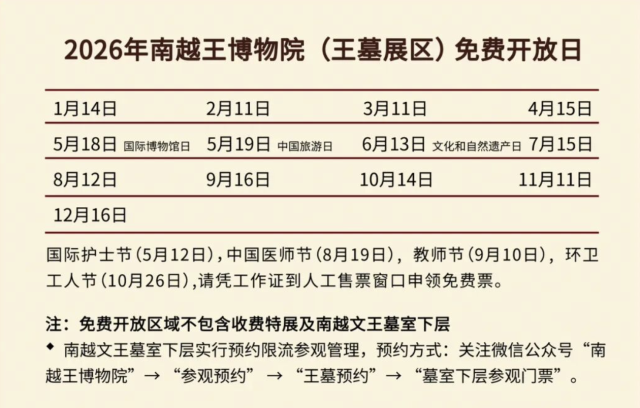 南越王博物院(王墓展区)免费开放日信息。