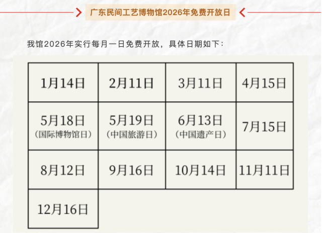 广东民间工艺博物馆免费开放日信息。